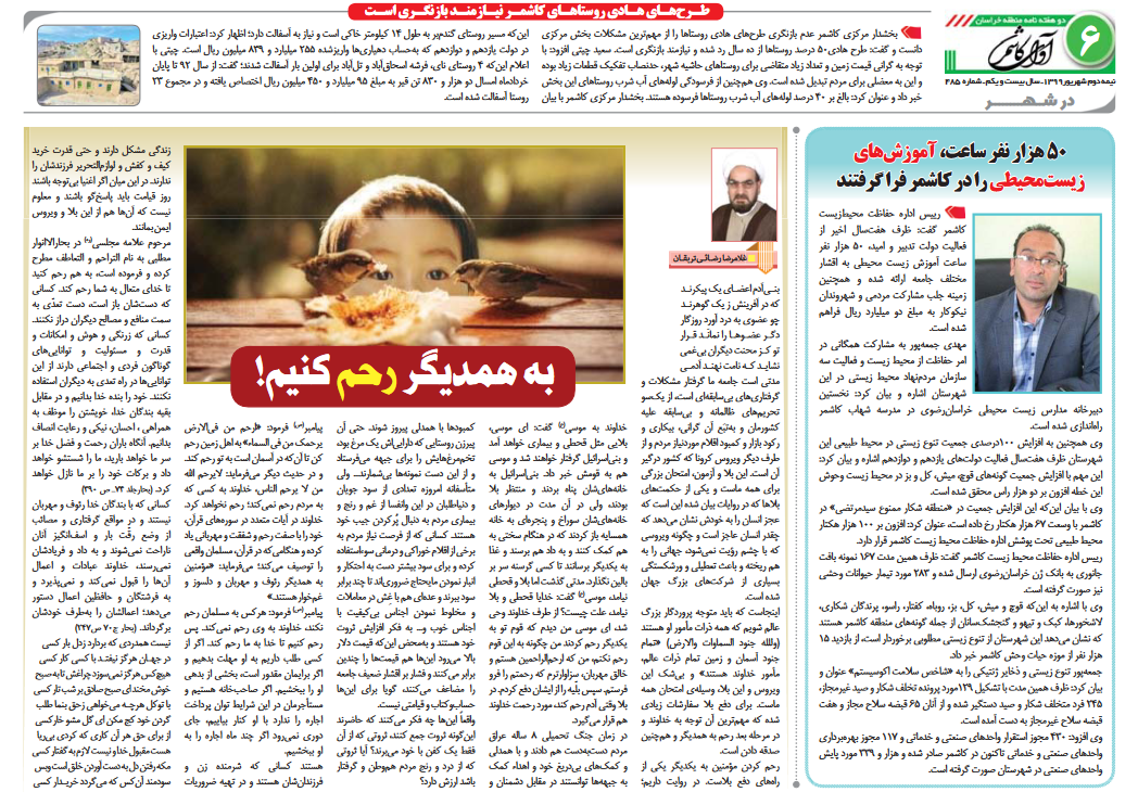 منبع خبر: دوهفتهنامه منطقه خراسان/ آوای کاشمر/ شماره ۴۸۵ /صفحه ۶