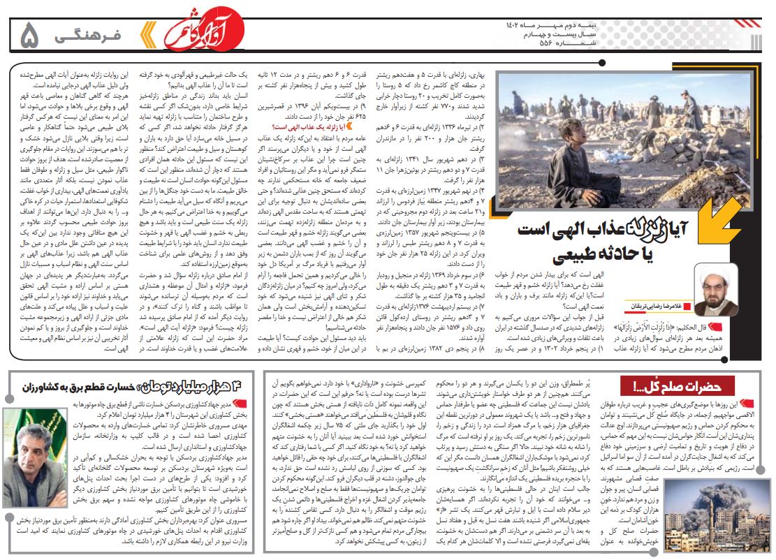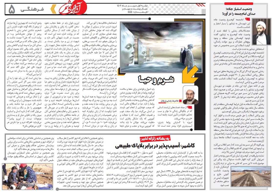 🔻روزنامه آوای کاشمر، شماره 858، صفحه5
