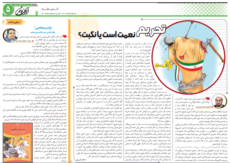 تحریمها اگر در مواردی برای کشور منفعت داشته، ولی زیانهای وارده از قِبل آن بیشمار است؛ تحریم ازیکطرف سفرهها را کوچکتر و مردم را فقیرتر و در مقابل عدهای را فربهتر کرده است و عدهای بهعنوان کاسب تحریم به ثروتهای بیشماری رسیده و میرسند و از بدبختی و گرسنگی مردم ثروتها اندوختهاند.
