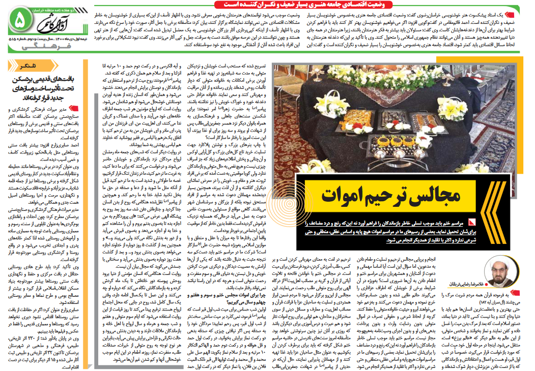 ۴_ تشکیل هیئت هفت نفره زمین در کاشمر