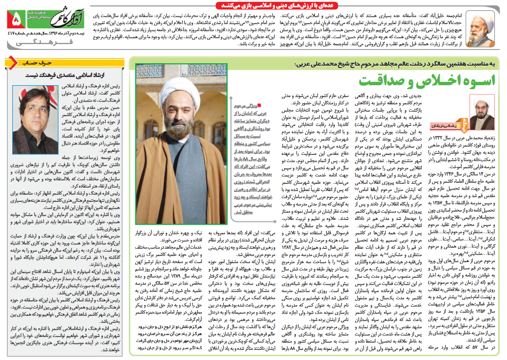 ⭕️ درگذشت عالم مجاهد و عالی قدر حضرت حجت الاسلام حسن حسن زاده کاشمری را به پیشگاه امام عصر (عج) و مقام معظم رهبری و جامعه روحانیت و بیت معظم له تسلیت عرض نموده و برای روح مطهر ایشان علو درجات و برای بازماندگان آن مرحوم صبر و شکیبائی از خداوند متعال مسئلت داریم. مبارزات خستگی ناپذیر آن عالم مجاهد علیه رژیم پهلوی و دفاع مستمر از آرمان های انقلاب اسلامی بخشی از خدمات آن عالم مهذب می باشد.