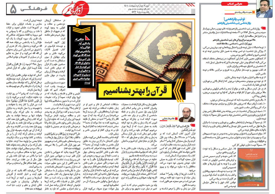 🔰حجت الاسلام رضایی تربقان محقق و پژوهشگر دینی در نوشتاری آورده است؛ قرآن کتابی است که مهندسی دین را بر عهده دارد، این کتاب آسمانی به کلیات و طراحی اصلی دین میپردازد و امامان معصوم (علیهم السلام) و علمای دین با توجه به آن کلیات و مهندسی و بهتناسب فهم مردم و اقتضائات زمانی به تشریح روان و سادهتر مطالب میپردازند.